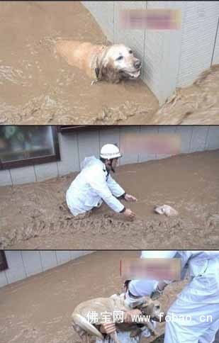 救难人员发现一只拉布拉多受困在土石流中,奋力前往营救,狗狗终获救!