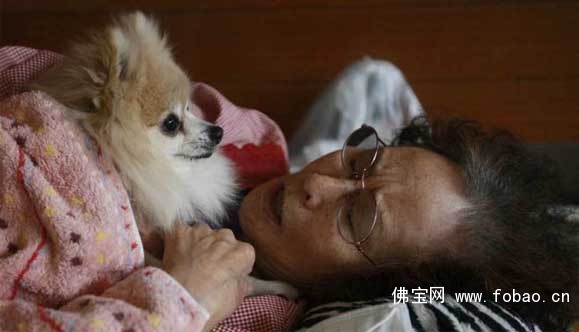 “你永远是我的宝贝!”--相濡以沫,温暖心房。老太太的左手紧紧地攥着狗狗的右爪,好像生怕它跑丢了。