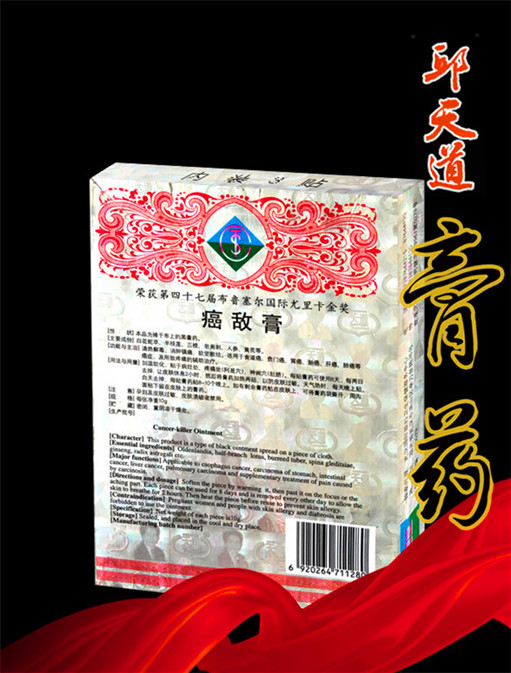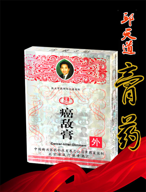 1993年2月18日,B超复查示右肝后叶探及4.0厘米×3.0厘米范围,诊断为肝癌(转愈中)。继续使用癌敌膏。1998年5月21日B超报告示右肝占位,右肝后叶探及1.3厘米×1.5厘米实性低回声光团,界欠清。B超室的几位医师在检查时问患者:你的肿块越来越小,在哪里治疗的?患者回答:就是用了你们“邱药师”的癌敌膏。
