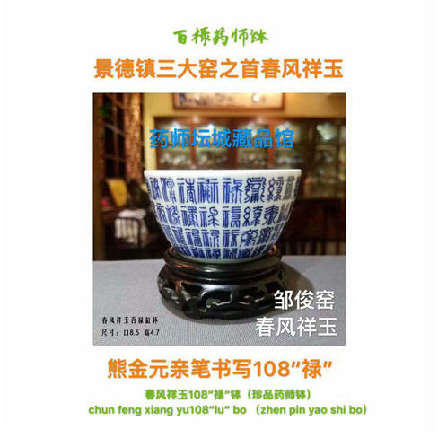 邹俊窑烧制,自赏或珍藏,送长辈送领导送大咖朋友,都是非常受欢迎的。百禄是篆书,不同的禄字体,非常难写,产量极低,而且每一个字体都不一样,所以书写难度非常大,写一个百禄钵花的工夫相当于写4个心经杯,难度可见一斑,因此价格也比心经高非常多。