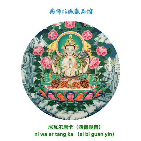 四臂观音菩萨是雪域西藏的守护神,藏人由老至幼家家户户,皆吟诵其六字大明咒:“嗡嘛呢叭咪吽”。广大藏蒙佛教徒还把***喇嘛奉为观音化身,四臂观音菩萨与文殊菩萨、金刚手菩萨,合称三族姓尊,代表大悲、大智、大力,为密乘行者人人必修的法门。