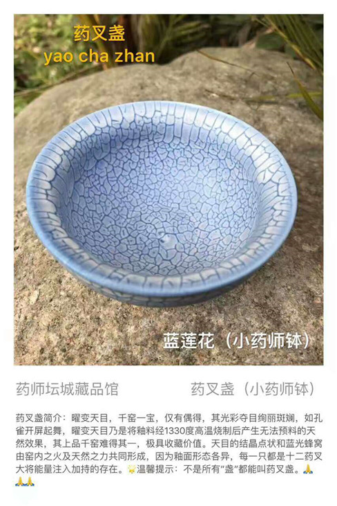 【药师坛城药师坛城藏品馆精品推荐——小药师钵(药叉盏广而告之不是所有“盏”都能叫药叉盏)连载10071007尊小药师钵(药叉盏)选用蓝莲花美人杯“入选”——蓝莲花美人杯精心烧制十二药叉大将能量注入加持而成】