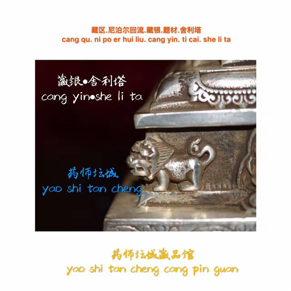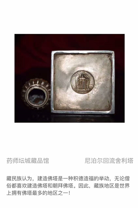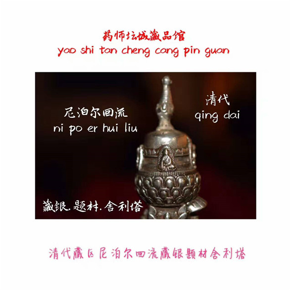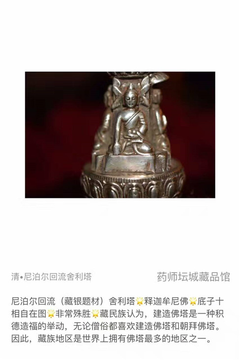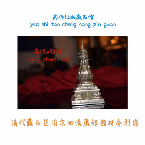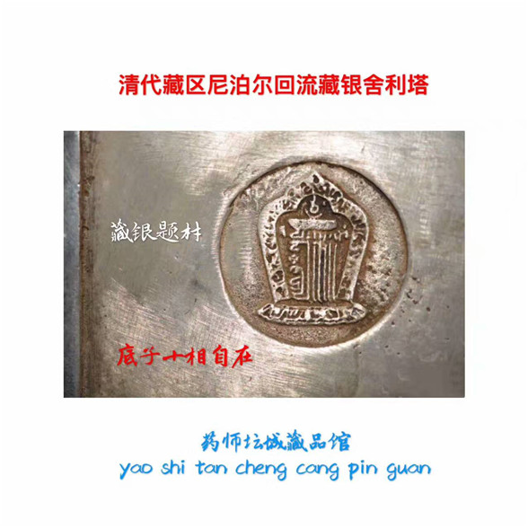 藏品描述:清代藏区,尼泊尔回流,藏银舍利塔(释迦牟尼佛),底子十相自在。