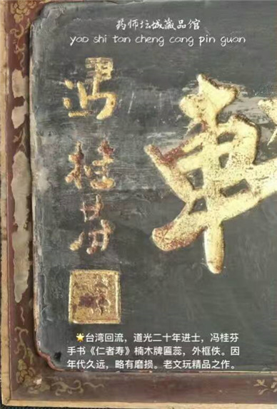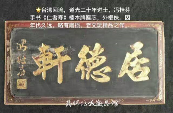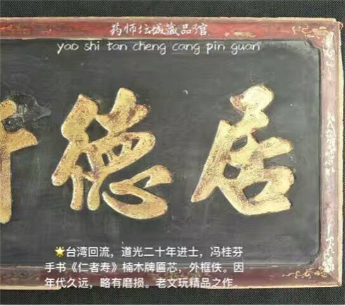 藏品简介:台湾回流,道光二十年进士,冯桂芬手书《仁者寿》楠木牌匾芯,外框佚。因年代久远,略有磨损。老文玩精品之作。