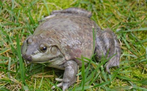 牛蛙特征:体形与一般蛙相同,但个体较大,雌蛙体长达20厘米,雄蛙18厘米,最大个体可达2千克以上。头部宽扁。口端位,吻端尖圆面钝。眼球外突,分上下两部分,下眼皮上有一个可折绉的瞬膜,可将眼闭合。背部略粗糙,有细微的肤棱。四肢粗壮,前肢短,无蹼。雄性个体第一趾内侧有一明显的灰色瘤状突起。后肢较长大,趾间有蹼。肤色随着生活环境而多变,通常背部及四肢为绿褐色,背部带有暗褐色斑纹;头部及口缘鲜绿色;腹面白色;咽喉下面的颜色随雌雄而异,雌性多为白色、灰色或暗灰色,雄性为金黄色。鸣声很大,远闻如牛叫而得名。