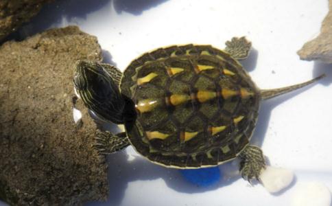 小鳄龟特征:鳄龟上颌似钩状,但钩小,触须仅有少量,背甲棕黄色或黑褐色,有3条纵行棱脊,肋盾略隆起,随着时间推移棱脊逐渐磨耗。腹甲灰白色,无上缘盾,尾略短,最显著的特征是尾的背面有一锯齿形脊,又称尾棘。