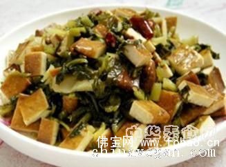 材料:香干300克、雪里蕻腌菜100克、干红辣椒2个、香葱1棵。