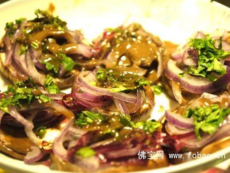 用料:茄子、紫洋葱、香菜、麻酱、盐、 糖、橄榄油