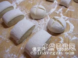 3、 用刀切成块,即成为刀切馒头,两端可做成开花馒头。