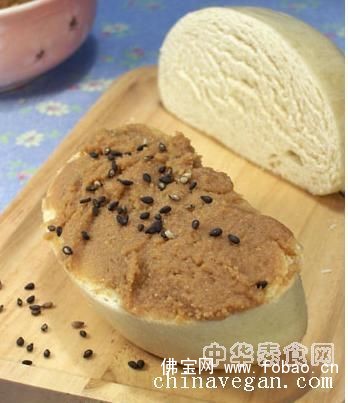 7、 馒头蒸熟,把馒头切开,抹上红糖芝麻酱即可。
