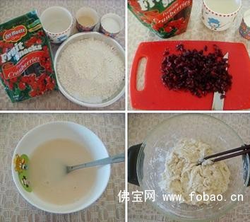 原料:面粉200克,地扪蔓越莓干50-60克,糖25克,酵母3克,温水180-190克