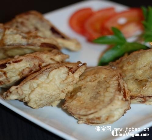 4、锅置火上,放油烧热,把茄子夹放入油锅内,炸至两面焦黄,出锅即成。