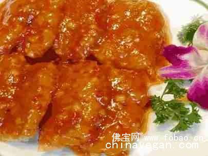 2、马蹄切碎、与调料一起加水生粉勾芡成汁后浇在炸好的山药排上。