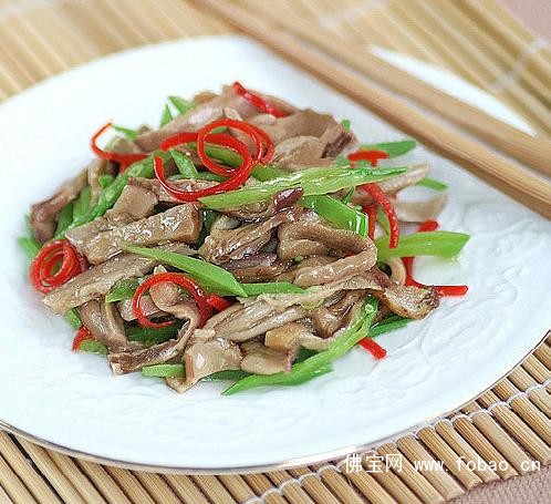 原料:牛肝菌 150克红椒一个荷兰豆100克 盐1/2茶匙(3克)蘑菇精少许香油少许