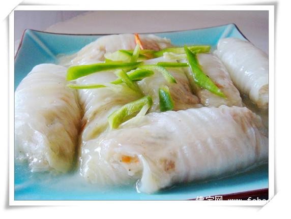 4、将做好的白菜卷连盘子一起放入蒸锅里蒸约30分钟取出,把盘中的汤汁倒出,用少许粉欠勾欠后淋在菜卷上即可。