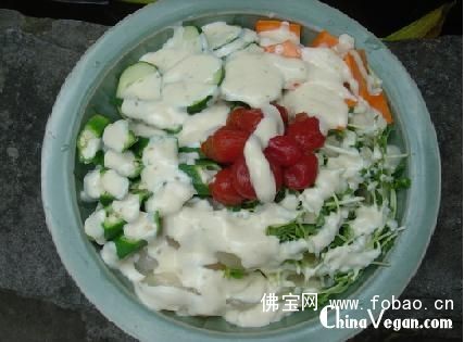 2、将每一种材料都放入盘中排好,再淋上豆俯美奶滋。