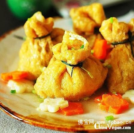Tips: 1、如无现成的豆皮包卖,可用豆腐炸透后先煮一下,再用勺子掏空豆皮内部。