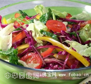 原料:紫甘蓝、球生菜、红椒、黄椒、小番茄、香菜