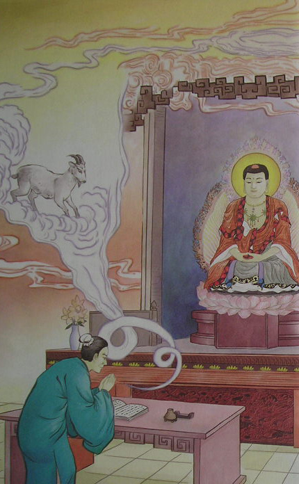 县令好奇询问是何因由?潘果取纸书守,照实回答,县令一时为使他觉悟,警惕潘果,教他虔诚书法华经作功德,为羊超荐,潘果遵照县令所劝,发心敬信,每日斋戒虔诚写经、诵经、从不间断。