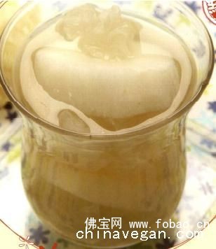 2、 白木耳泡水,发起后,跟山药、冰糖一起放入水中用小火煮滚。