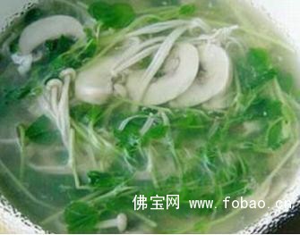 材料:鲜豆苗、蘑菇、金针菇、适量。