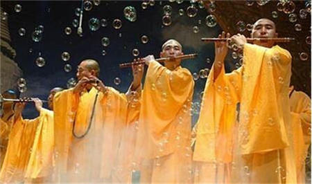 采用艺术形式,是佛教传播的方法之一。寓教义于生动的艺术形象之中,让人们直接从中得到启发与感化,以达到流布佛法之目的。音乐,作为文化艺术中的一个重要部类,它伴随着人们进入文明的生活,同时又与佛教有着甚深的因缘。佛教在中国传播,从一开始就伴随着音乐这一艺术。所谓佛教音乐,就是借助于音乐的美感作用来宣扬教义,净化人心。但是,由于种种历史原因,未能象其他兄弟艺术那样被较为完整地保存下来。因此,佛教音乐在历史上的原貌如何,现在只能从文献资料中依靠记载得到一点信息。或者,在美术、雕塑里可以看到有关佛教音乐的资料,如敦煌莫高窟就有描绘乐舞洞窟二百余个,绘有各种乐器四十四种,约四千余件,其中吹、拉、弹、打样样俱全,大小不同的各类乐队五百余组,形态各异的乐伎三千余身。人们可以想像其音响风貌是何等状观、动听和新奇美妙啊!