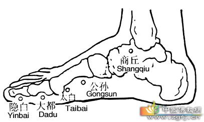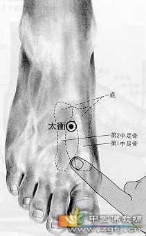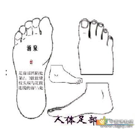 处(计算时不包括足趾),这个穴位比较敏感,不要用太大的力度,稍有感觉即可,以边按边揉为佳,持续