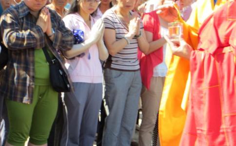 有一次,天气很热,好几千万只的小虫在泥土里生活,但泥土里的水渐渐枯竭了,这些虫子即将被太阳晒死,观世音菩萨看见这些虫子的遭遇,生起悲悯心,就变成一只蜜蜂,这一只蜜蜂一直念着唵嘛呢呗美吽,念完以后便飞走了,他也知道这些虫子一定会死掉,但由于它们临死之前听见六字大明咒,因此捨报以后再也不作小昆虫,不但如此,而且个个都成了大菩萨,这是经典里写的,叫什么菩萨?口溢香菩萨,因为他们的嘴巴会发出香味,为什么?他们被观音菩萨度化以后,生生世世常念唵嘛呢呗美吽,用这个音声度化世人,他们的嘴巴就像吐出香味一样,经常利益众生。所以各位,以后不管走到哪里,市场或餐厅,要不断地念唵嘛呢呗美吽,普遍与一切众生结善缘。将来各位成佛之后才能给予他们真实利益。