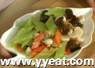 2、坐锅点火入油,至4成熟,放入葱姜末略炒至出香味,将上述主辅料放入锅中炒匀,加入盐、鸡精,炒至断生,再加入高汤,炒至入味后,水淀粉勾稀芡,淋香油即成。