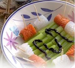 调味料:海苔酱1汤匙、酱油1小碟、芥茉1小匙