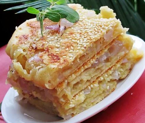 这个做法是发面饼,但也可用死面来做。这种饼胚比较厚实,所以在烙至的时候可适当的加点水加盖焖之,可以使饼里面也能熟透,而且烙出的饼口感更软嫩。