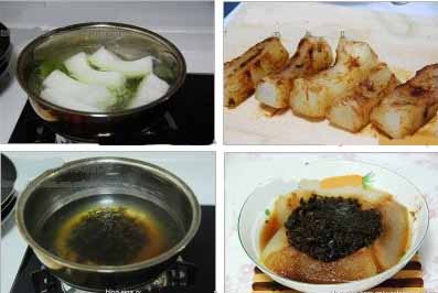 原料:冬瓜一段、芽菜60g、甜面酱适量