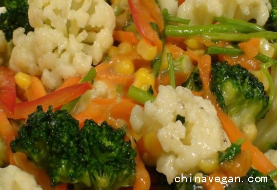 白花菜(切小朵)400公克、绿花椰菜(切小朵)100公克、红萝卜丝60公克、玉米粒(可用罐头)100公克、香菜(切小段)40公克