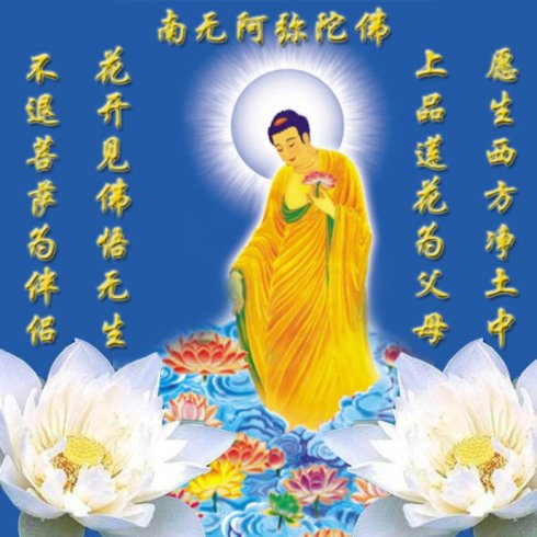 在十方世界若有众生能诚心念南无阿弥陀佛的名号,此人临命终时,阿弥陀佛会来接引他去成佛。