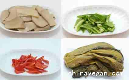 1、 杏鲍菇400克洗净,放入锅中加水煮熟,冷却后切片备用。