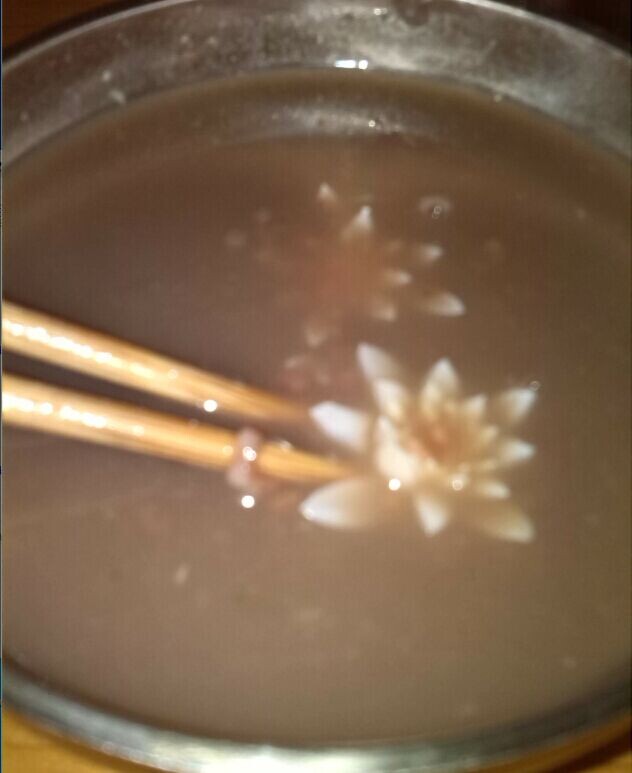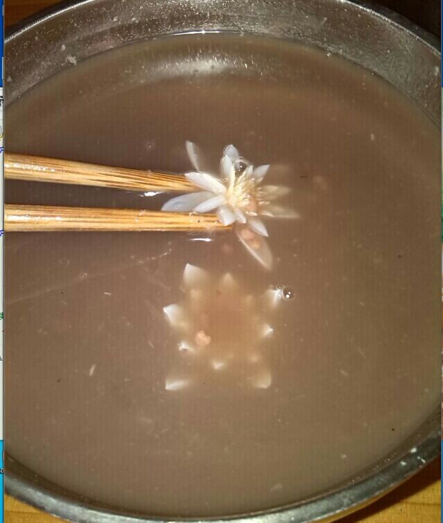 汤碗中生出的白莲花,花瓣只有筷子头大。