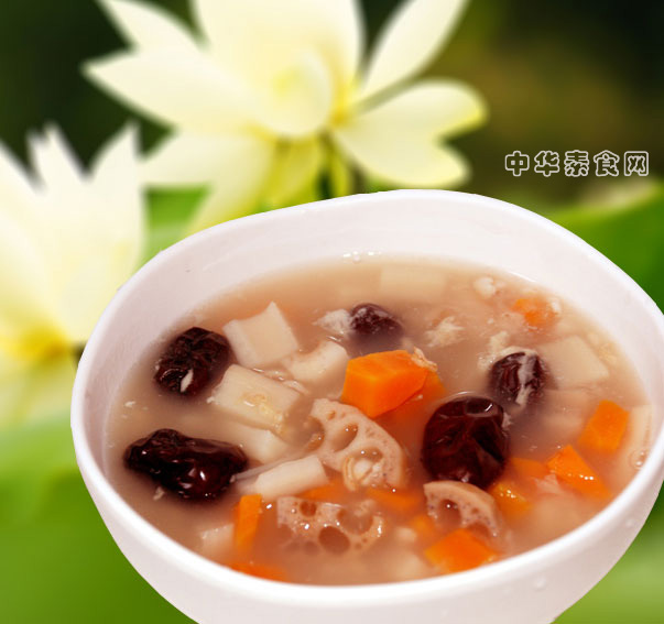 3. 莲藕、胡萝卜都切成丁,比红枣要小的丁;
