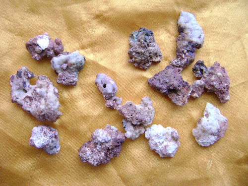 我也同时向赵居士家赶,到他家,骨灰已经摆放在房中,我让家人将骨灰盒打开,并问家人,有没有舍利,家人说没有,我说不可能,快打开看,于是将骨灰拿出,放在一块白布上,将骨灰摊开,用手一拨,大家非常惊讶,竟然好多舍利,大家谨慎的检舍利,竟然有一碗,有的在骨头上,白如玉石,有的在头盖骨下出现绿如翡翠的脑舍利,有的如铁,最为奇妙的是竟然出现两块脑膜不坏舍利,还有红色的牙舍利,血舍利。只可惜在殡仪馆是因不能装盒,殡仪馆工作人员用打铁铲用力拍打骨灰,大量的黄绿红小舍利脱落于细的骨灰中,不能检出,我也就只检一