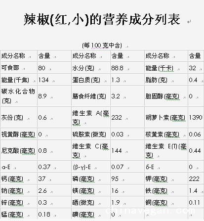 [参考] 含辣味成分,主要为辣椒碱、二氢辣椒碱;另含挥发油、蛋白质、钙、磷,丰富的维生素C、胡萝卜素及辣椒红素。