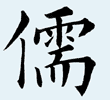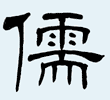 小篆:儒,从人从需;本义作「学者之称」解。学者乃有道之士,故从「人」。又「需」字,为需要义,学者乃人群中所最需要者。故「儒」从「需」声。又〖扬子法言〗说「通天、地、人曰儒」。